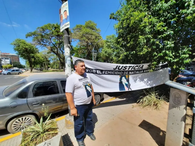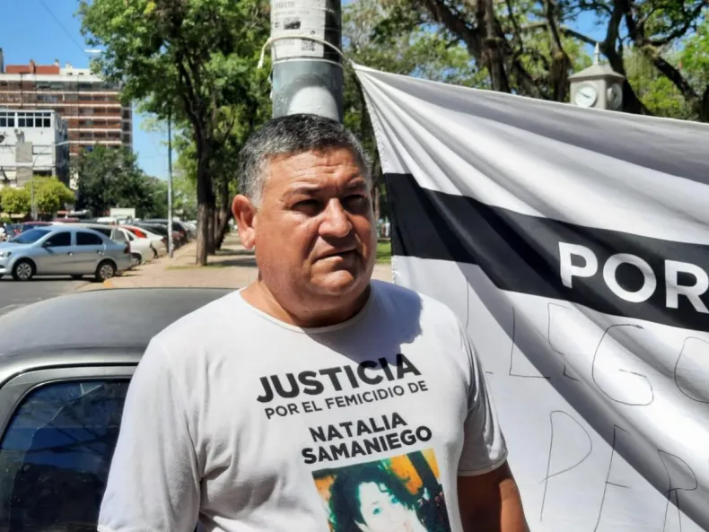 "Mi hija fue víctima de femicidio en septiembre de 2018. Un vecino llamó al 911 y se hizo presente la policía en el departamento en el que vivía Natalia por el olor que venía del departamento. La policía constató que el departamento estaba cerrado con la llave colocada del lado de adentro, entonces pide la presencia del juez que se hace presente en el lugar, hizo romper la puerta del departamento, ingresaron y encontraron al asesino en estado inconsciente en el piso, lo asistieron al asesino, lo llevaron al hospital y siguieron buscando de dónde venía el olor, abrieron la heladera del departamento y la encontraron a Natalia envuelta en una sábana, muerta y en estado de descomposición. Ahí comenzó toda la investigación. Al otro día le hicieron la autopsia y determinaron que fue estrangulada con las propias manos de Natalia", contó Samaniego.