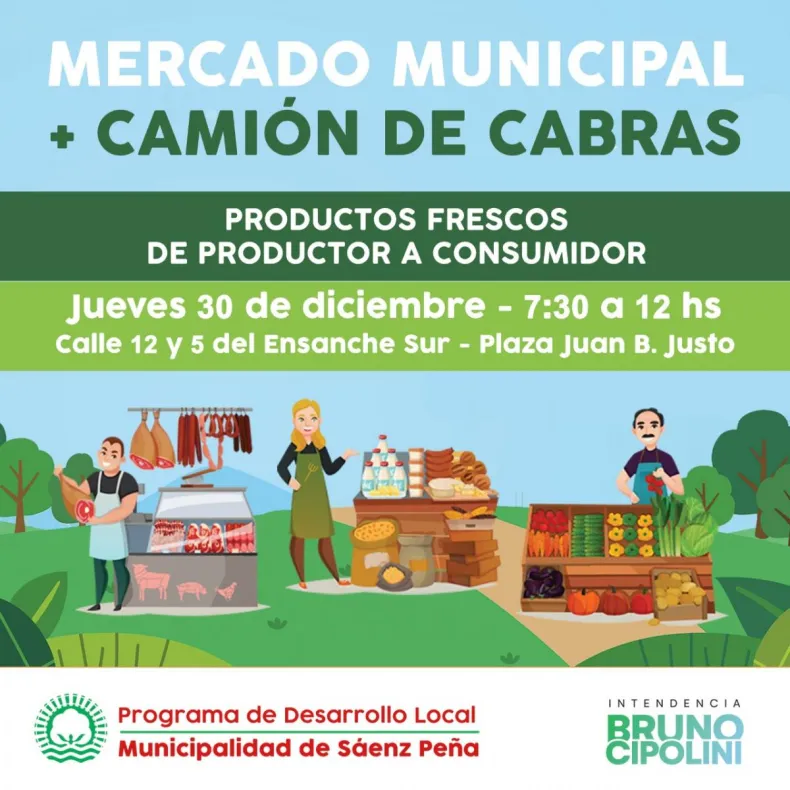 Este jueves el Mercado Municipal y el camión de cabras estarán en la plaza Juan B. Justo