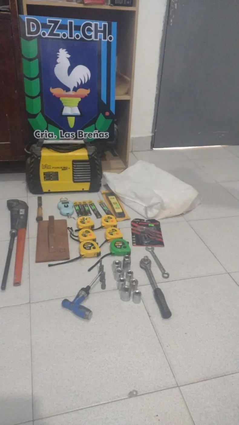 Una vez que los delincuentes fueron detenidos, le informaron a la policía en donde había escondido los elementos robados. De esa manera, en un móvil policial se trasladaron hasta una zona de matorrales lindante con la ruta 6. Se secuestró amoladoras, cintas métricas, taladros y varios juegos de llave.