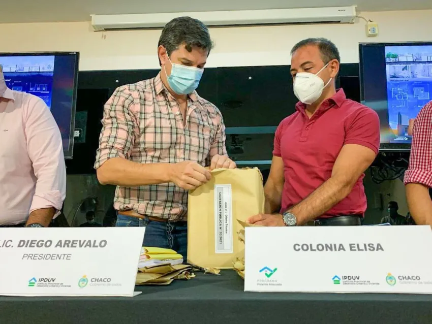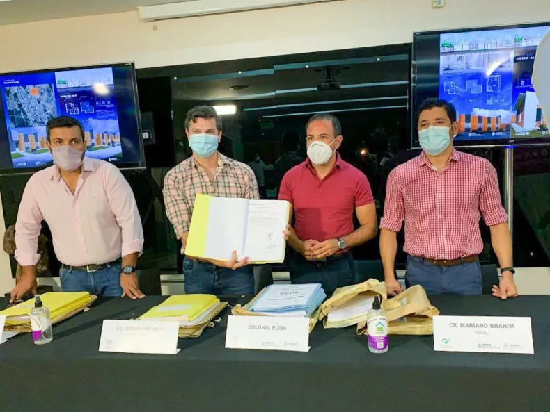 El presidente del Instituto Provincial de Desarrollo Urbano y Vivienda (IPDUV) Diego Arévalo encabezó la apertura de sobres de licitación para la construcción de 40 viviendas en Colonia Elisa en el marco del Programa Casa Propia – Construir Futuro. El proyecto, que tiene un plazo de ejecución de ocho meses, demandará una inversión de $281.401.369,40. Se presentaron cuatro empresas oferentes.