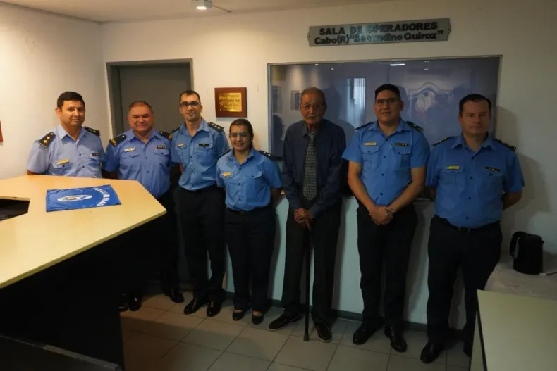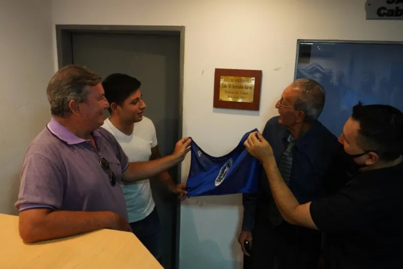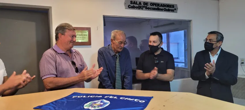 Esta mañana, cerca de las 11, Secundino Quiroz fue recibido por el Jefe de la Policía comisario general Ariel Acuña, el Director del Centro de Análisis y Control Comisario General Christian Verón, el Jefe del Departamento Comunicaciones e Informática Comisario Inspector Juan Diego Gómez y todo el personal que desarrolla sus funciones en ese Departamento, que lo homenajearon, resaltaron su legado y le presentaron el Salón que desde hoy lleva su nombre.