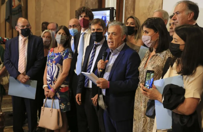 La presentación fue llevada adelante por el jefe del interbloque, Alfredo Cornejo, y los presidentes de bloque Luis Naidenoff (UCR); Humberto Schiavoni (Frente PRO); Juan Carlos Romero (Justicialista 8 de Octubre); Lucila Crexell (Movimiento Neuquino); Ignacio Torres (Integración y Desarrollo Chubutense) y Beatriz Ávila (Justicia Social).
