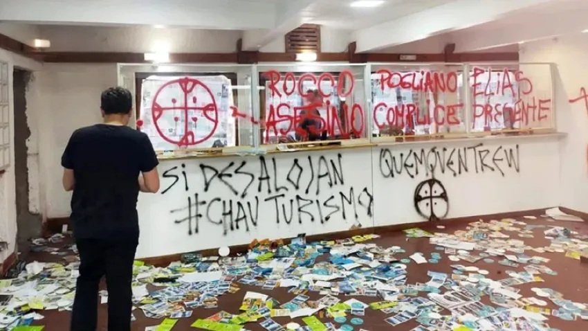 Un grupo mapuche ingresó por la fuerza y vandalizó la oficina de turismo de El Bolsón