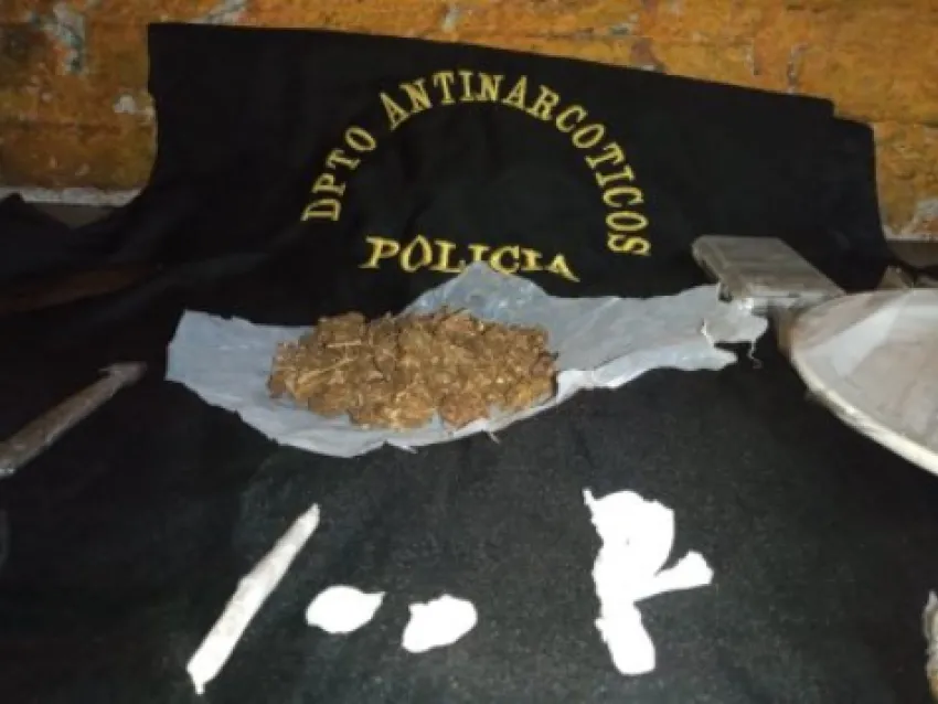 Una vez en el domicilio los uniformados inspeccionaron el lugar y hallaron un envoltorio con una sustancia verde amarronada, 24 cogollos de la misma sustancia, los cuales al ser verificados resultaron ser marihuana, tres envoltorios una sustancia blanca, la cual al realizar la prueba de campo resultó ser cocaína con una ínfima cantidad, recortes de nylon, una balanza, y la suma de $16.050.