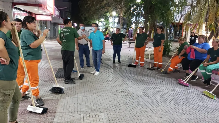 Las tareas incluyeron barrido, baldeo y saneamiento general con la asistencia técnica de un camión hidrante que lanzaba agua con cloro en la peatonal, sector de la ciudad donde hubo mucha circulación de personas en las últimas jornadas. El objetivo es mejorar las condiciones del espacio de cara a fin de año y optimizar la limpieza del sector en el marco de la temporada de verano para beneficiar a los comerciantes de la zona.