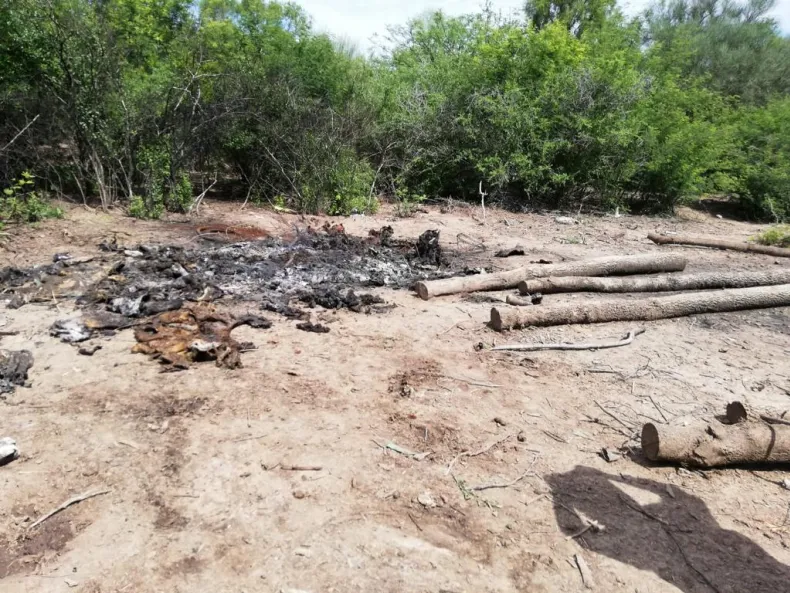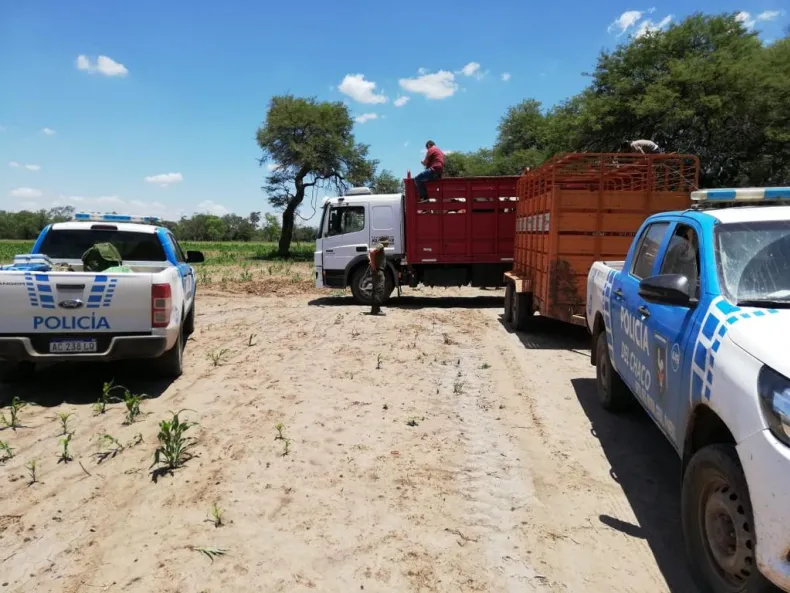 Asimismo, procedieron al secuestro de una camioneta marca Chevrolet, un tráiler sin marca visible color amarillo de dos ejes, un aparejo y un hierro marca que eran utilizados para la faena clandestina.
