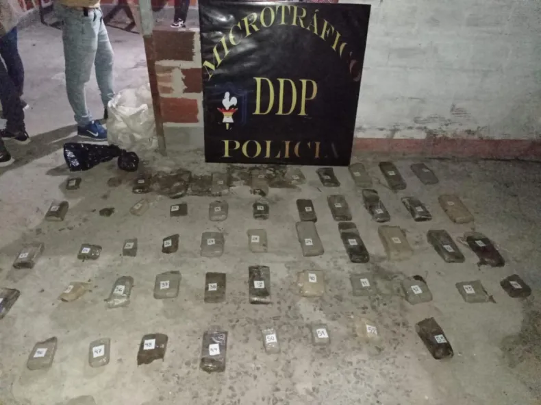 En ese mismo instante, otro equipo de trabajo allanó la vivienda. Allí, encontraron en el patio de la casa, 53 formatos rectangulares que dieron un peso de 20,992 kilogramos de marihuana y demoraron a un hombre de 24 años.