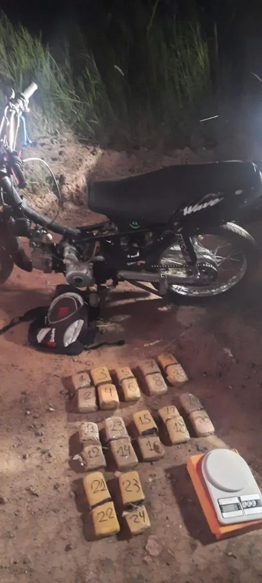 Por un lado, los uniformados comenzaron a seguir al motociclista que salió de la casa con una bolsa, aparentemente a realizar la venta de estupefacientes, y en la intersección de avenida Edison y Mosconi lo interceptaron. El joven de 25 años trasladaba 24 panes de cannabis sativa con un peso total de 3,097 kilos, es por eso que secuestraron la droga y la Honda Wave en la que se desplazaba.