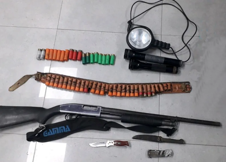 Efectivos de la División Patrulla Preventiva, interceptaron en inmediaciones de Calle 68 y 91 el paso de dos personas y les encontraron una escopeta calibre 12', de un solo caño, 42 cartuchos calibre 12 PG de diferentes marcas, un cuchillo con vaina, dos navajas cortapluma, un reflector y dos linternas.