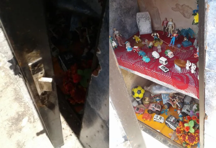 Rompieron y robaron juguetes de la tumba de un niño en el Cementerio