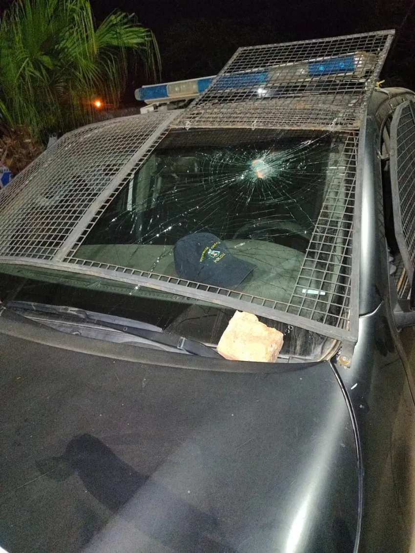 Al llegar constataron un desorden entre varias personas, quienes al observar el móvil policial comenzaron a arrojar objetos. Uno de ellos impactó en el parabrisas del patrullero.