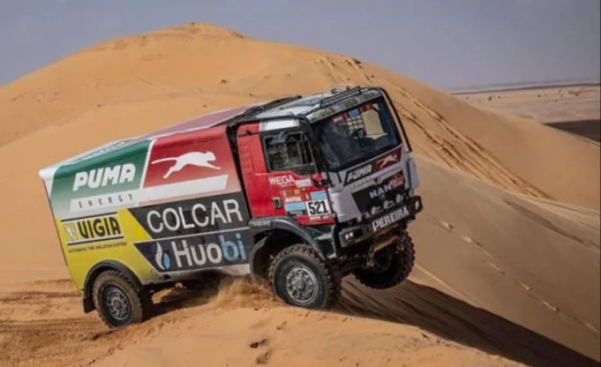 El argentino Juan Manuel Silva, que conduce un camión MAN del equipo Puma Energy Rally Team, quedó varado hoy en el kilómetro 278 de la séptima etapa del Rally Dakar 2022, y espera asistencia para salir de la difícil situación.