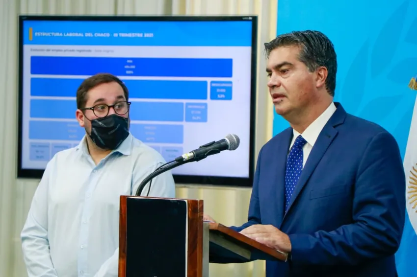 Esta mañana, el gobernador de la provincia, Jorge Captianich, encabezó una conferencia de prensa junto al ministro de Economía, Santiago Pérez Pons, y Alejandro San José, titular del Instituto de Estadísticas, Ciencias y Datos de Chaco, para hablar de los indicadores económicos del último año.