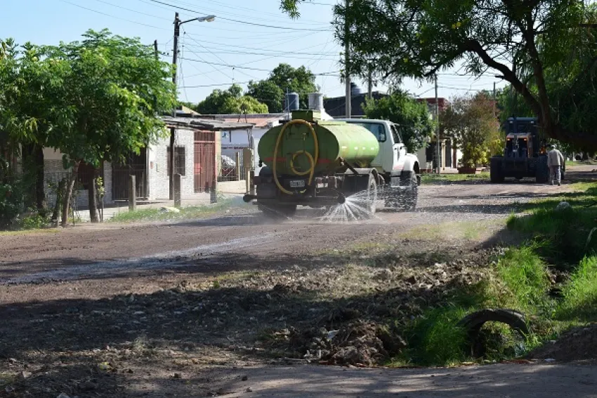 En Villa del Oeste, el Municipio de Resistencia realizó tareas de mejoramiento de las calles de tierra del barrio, con perfilado y regado. Acción que forma parte de una amplia planificación de trabajos para mejorar las calles de la ciudad.