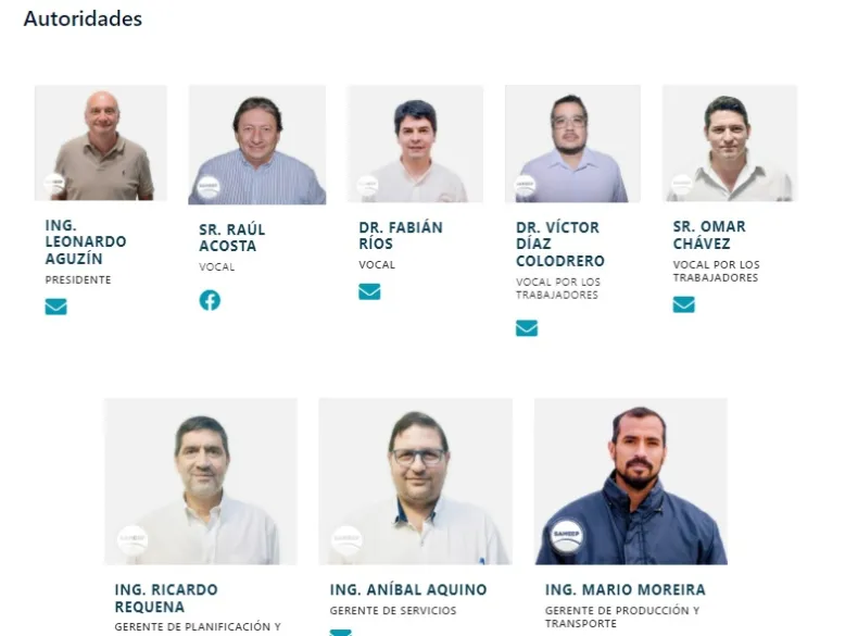 En la página de SAMEEP, Raúl Acosta sigue formando parte del directorio de la empresa, pese a no cumplir con sus responsabilidades. Ante la consulta sobre un posible remplazo, Aguzín lo descartó e indicó que "no es la prioridad".