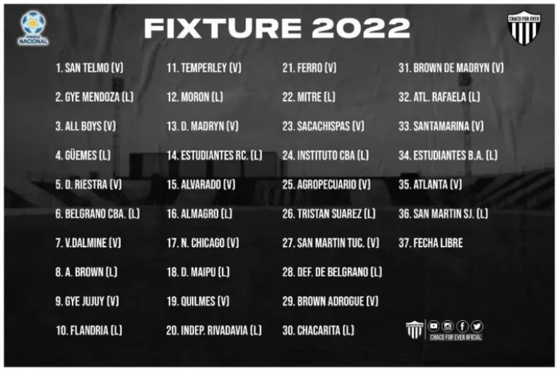 En la jornada de hoy, la Asociación del Futbol Argentino llevó a cabo el sorteo del fixture de la Primera Nacional, segunda categoría en importancia en nuestro país y donde compite Chaco For Ever, que debutará contra San Telmo, aunque todavía no se sabe con exactitud el día y la hora.