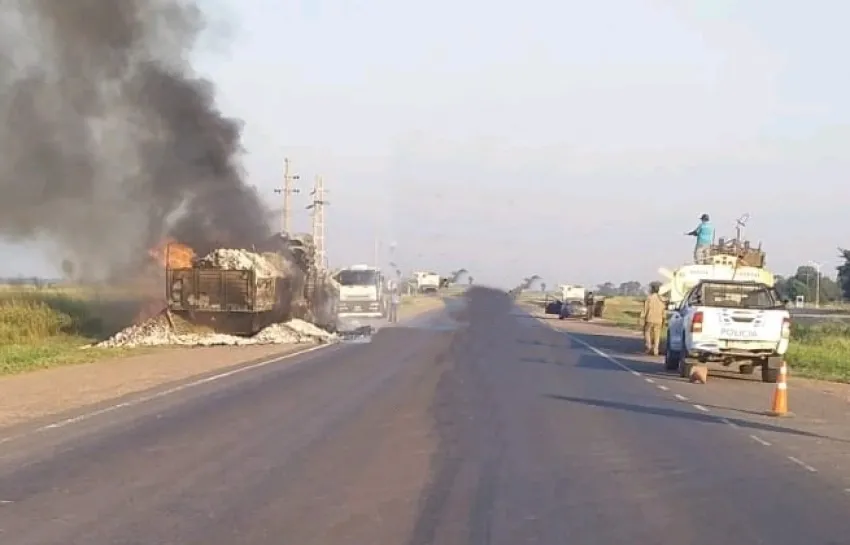 El conductor de un camión Iveco logró desligar el acoplado semirremolque del vehículo que manejaba y que se estaba prendiendo fuego. El cargamento que transportaba era una dotación considerable de bolsas de carbón vegetal. El hecho sucedió sobre Ruta Nacional 16, km 213.