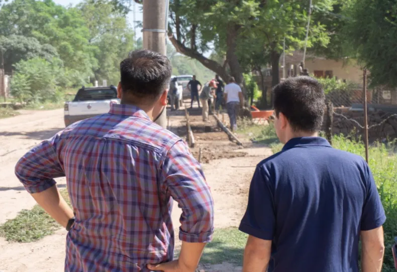 El intendente Bruno Cipolini junto al subsecretario de Obras Públicas, Milton Acuña, visitaron el barrio Tiro Federal donde se construyen veredas perimetrales.