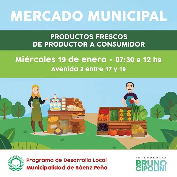 El miércoles 19 de enero los vecinos de Sáenz Peña podrán acercarse a la Avenida 2, entre calles 17 y 19, de 7:30 a 12:00 horas, donde podrán acceder a productos de primera calidad a precio diferenciado en el Mercado Municipal.