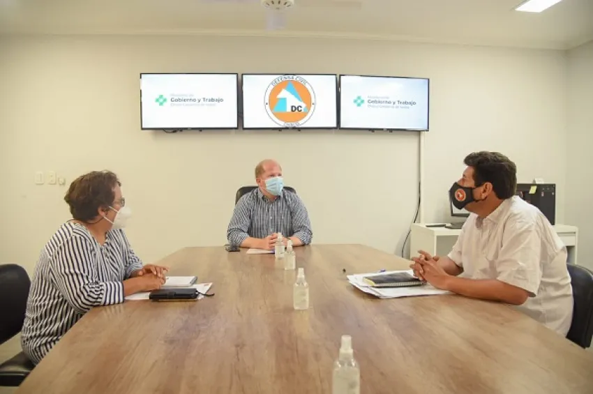 El ministro de Gobierno y Trabajo, Juan Manuel Chapo, se reunió con el subsecretario de Protección Civil, Mario Sandoval, y la directora de Defensa Civil, Analía Acosta, para evaluar el seguimiento de los distintos focos de incendio que se produjeron en la provincia, producto de las altas temperaturas y la falta de lluvias. Además, anunció la adhesión de la Provincia al decreto nacional de Estado de Emergencia Ambiental, a través del cual se adquirirán nuevos equipos para bomberos voluntarios y Defensa Civil provincial.