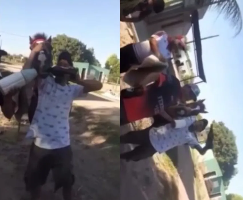 De no creer: dos hombres se grabaron intentando darle cerveza a un caballo, la Policía los busca