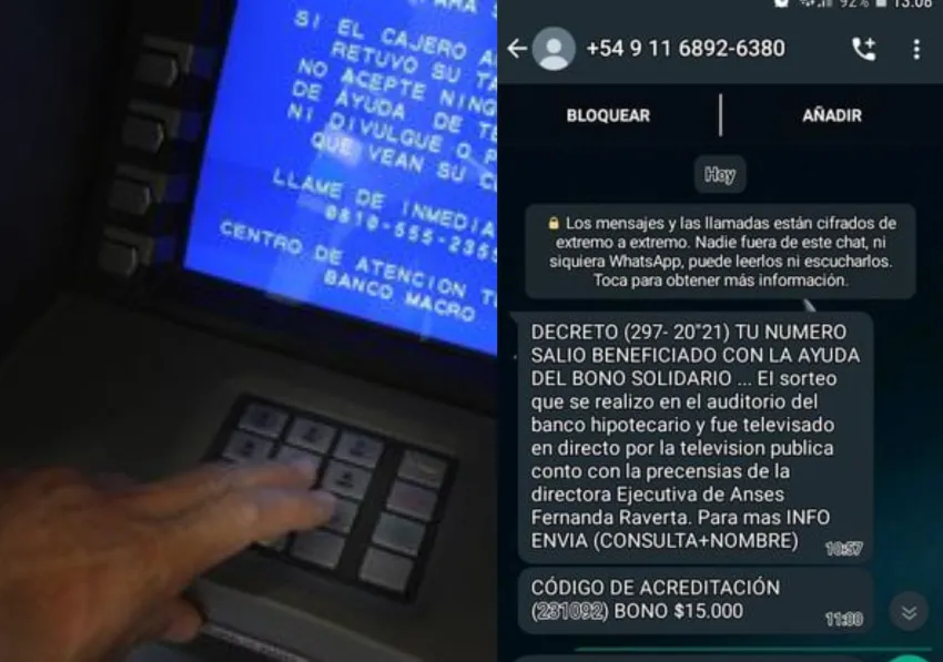 Las estafas siguen y una de las últimas que dio a conocer tiene que ver con una campaña de mensajes por Whatsapp señalando un decreto presidencial y asegurando "tu número salió beneficiado con la ayuda del bono solidario".