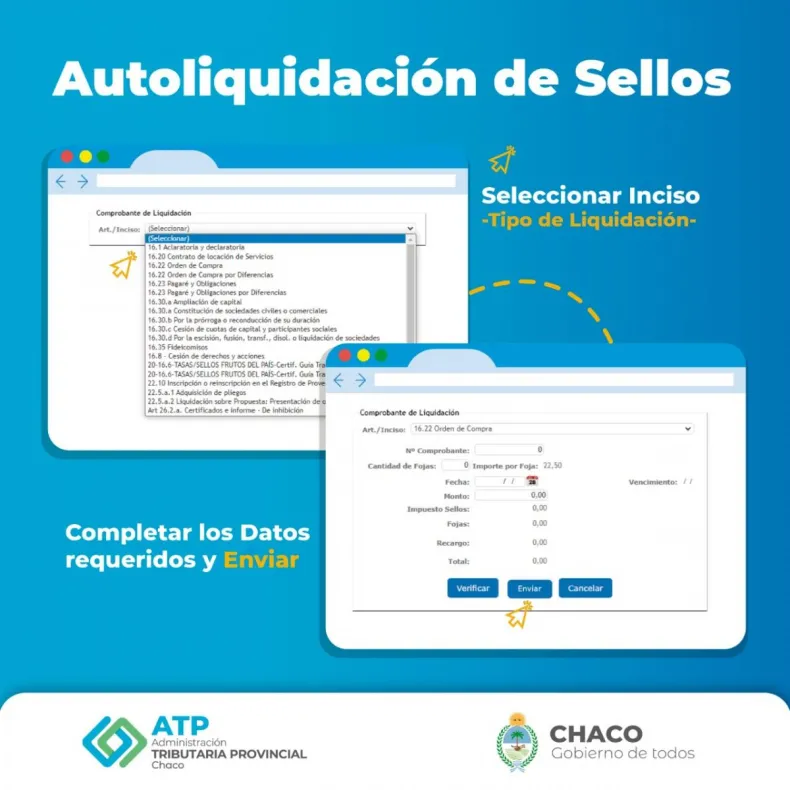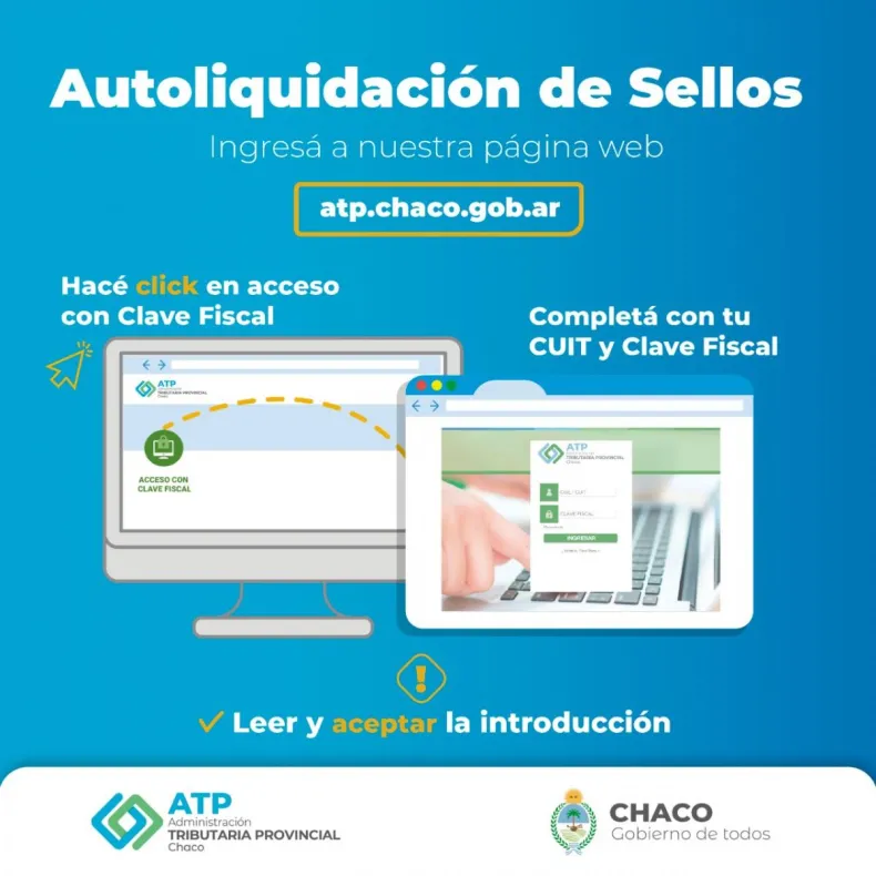 Asimismo, se informa que también es posible realizar trámites online de manera ágil y rápida a través de la página web: Autoliquidación de Sellos, solicitud de certificado fiscal para contratar, adhesión al Domicilio Fiscal Electrónico, entre otros. Los tutoriales se encuentran en https://atp.chaco.gob.ar/instructivos. Se reciben consultas y dudas en el mail [email protected].