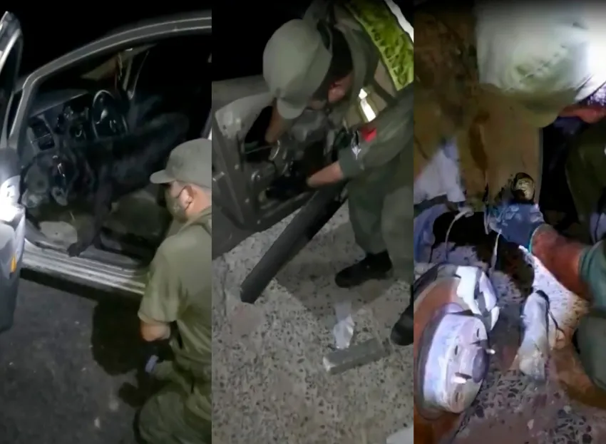 Al comenzar con el registro correspondiente, con el apoyo del can detector de narcóticos "Alfonsina", los funcionarios observaron que reaccionó como lo hace habitualmente ante la presencia de drogas al pasar por el sector de la puerta delantera del lado del conductor.