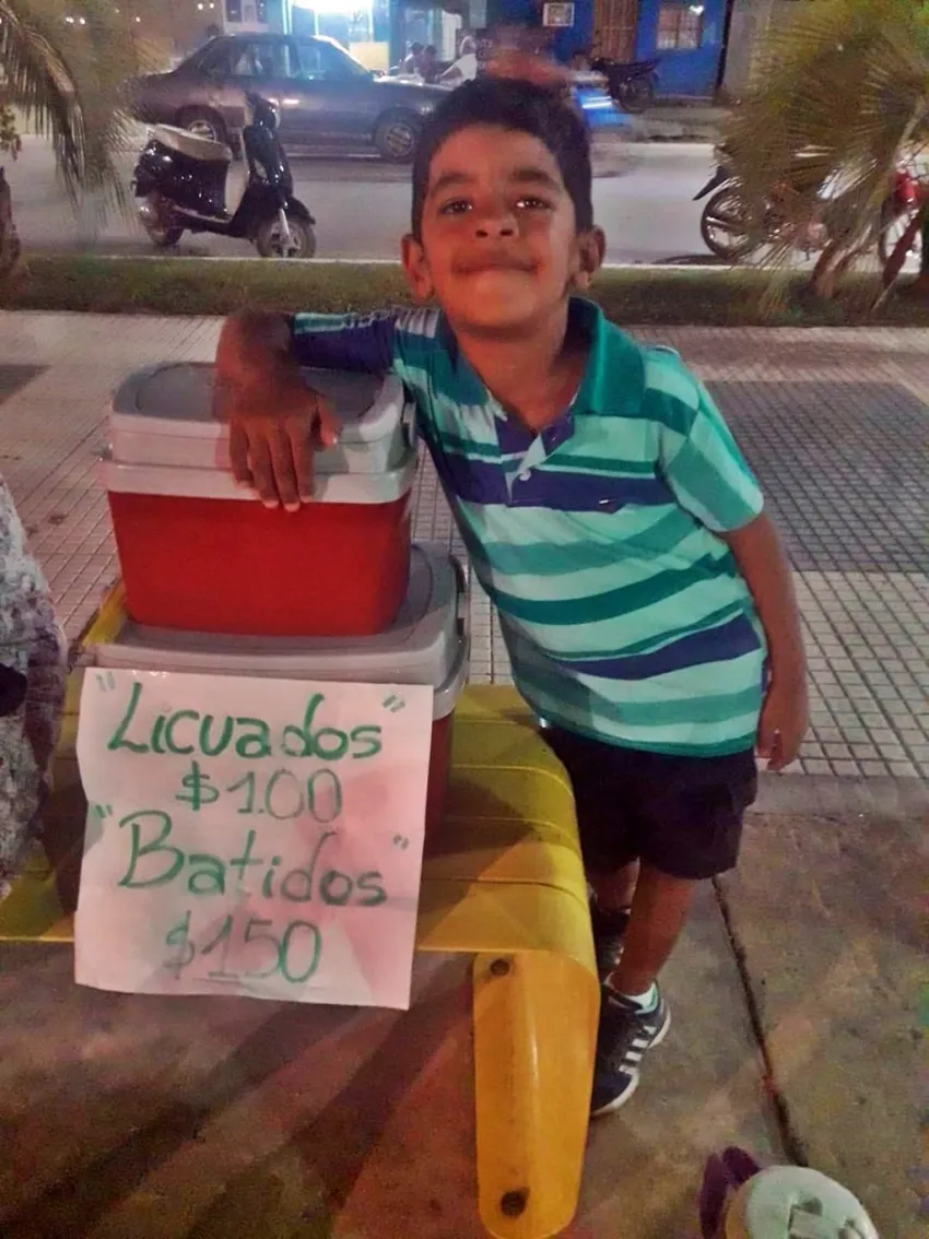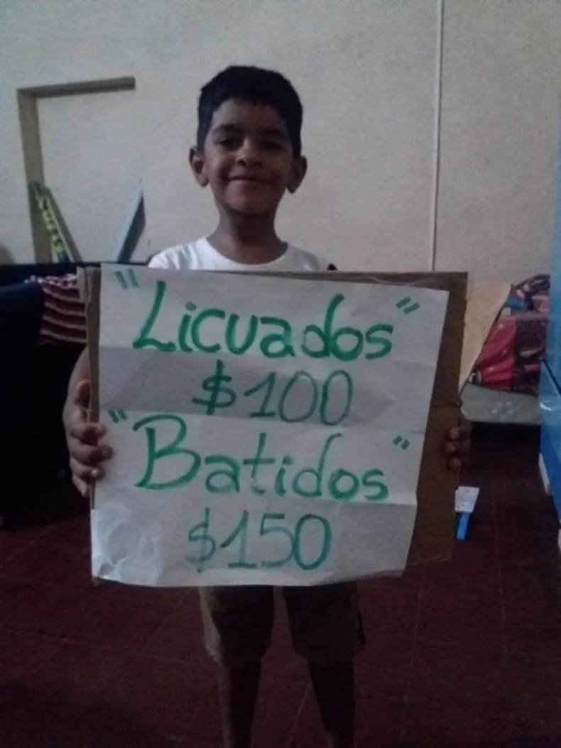 Pero hoy, la situación pasa en la localidad de Villa Berthet, más conocida como la ciudad del Diamante Chaqueño, donde reside Elías, un niño de tan solo 6 años y que tomó la decisión de poner un puesto de ventas de licuados a un valor de 100 pesos y batidos a 150 en la plaza local.