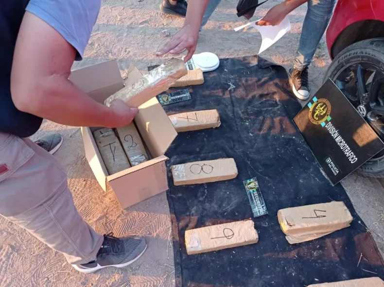 Al revisar el interior de la mochila, los efectivos notaron que trasladaba un total de 10 panes de marihuana, arrojando un peso total de 10 kilos y arrojando positivo para cannabis sativa. Intervino el Juzgado Federal N° 1 a cargo del Dr. Alcides Ricardo.