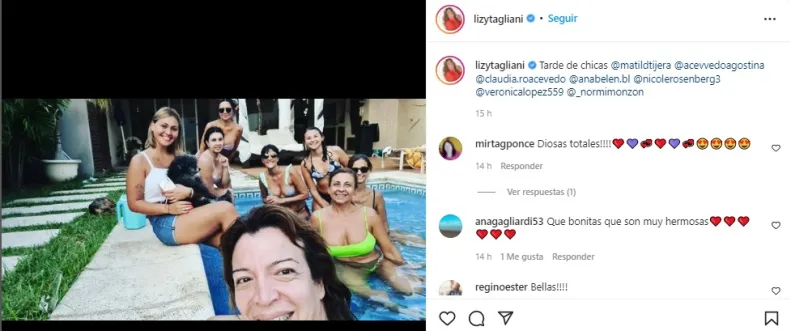 La conductora y comediante Lizy Tagliani pasa unos días de "relax" en Resistencia junto a sus familiares y amigos. Aunque no trascendió cuándo llegó, su primer posteo en redes sociales desde Chaco fue hace dos días.