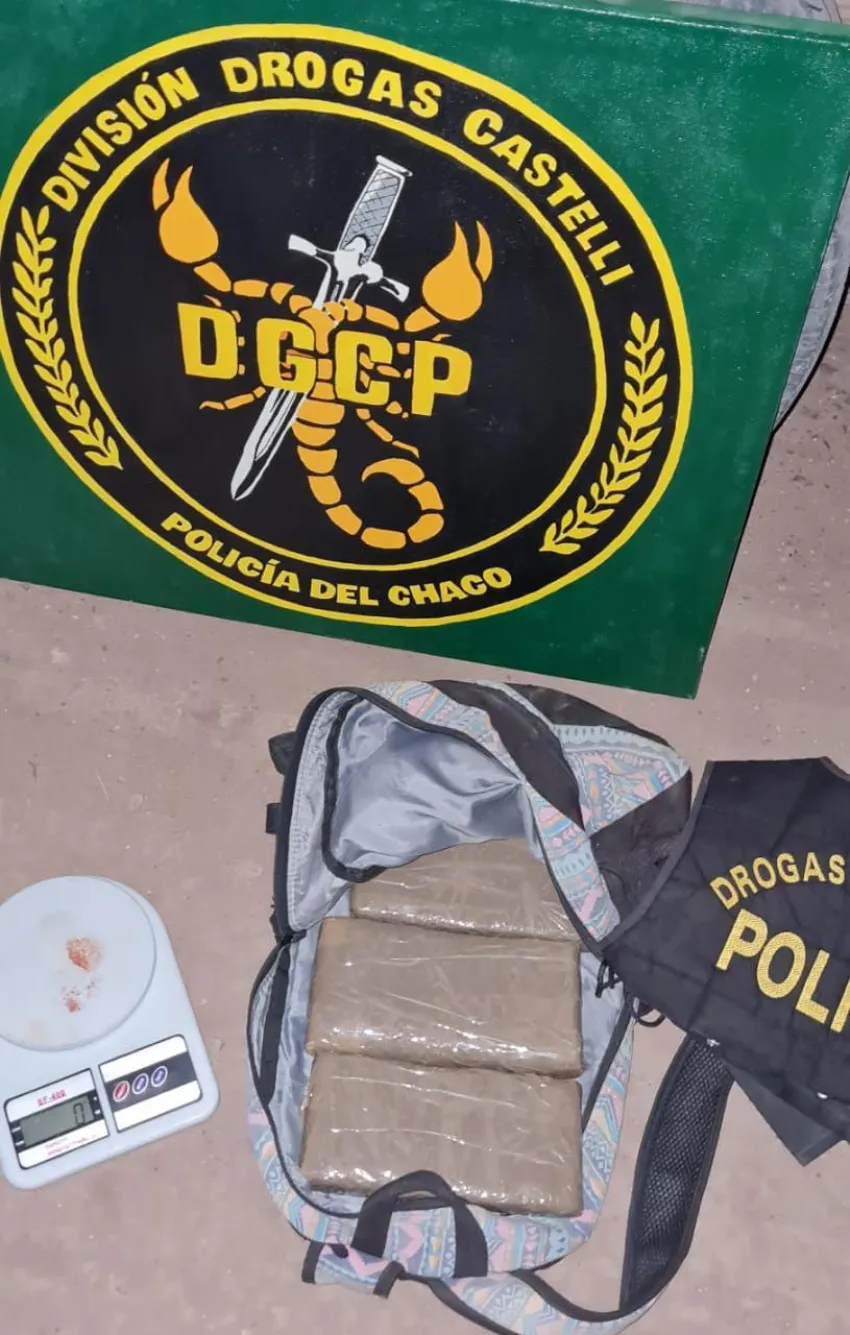 La detención se dio en la localidad de Juan José Castelli, cuando el personal de la División Operaciones Drogas recibió la información de que un joven de 23 años se encontraba en las cercanías de un Polideportivo con las intenciones de vender estupefacientes.