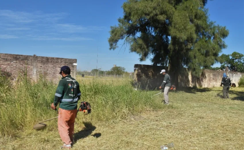 Trabajadores municipales realizaron trabajos de saneamiento ambiental en el Club Vélez Sarsfield, ubicado en avenida Alvear al 3300 cerca del cruce con la avenida Lago Nahuel Huapi, en el límite de Resistencia con Fontana.