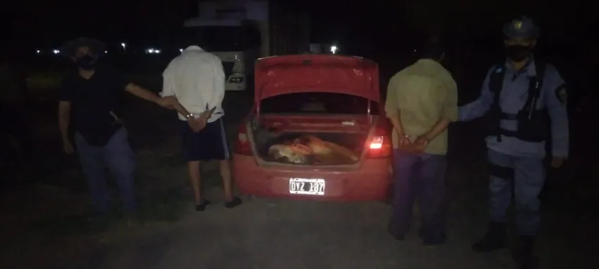 Este domingo, en horas de la madrugada, en medio de una persecución los efectivos detuvieron a dos hombres de 38 y 42 años que llevaban 150 kilogramos de producto carneo.
