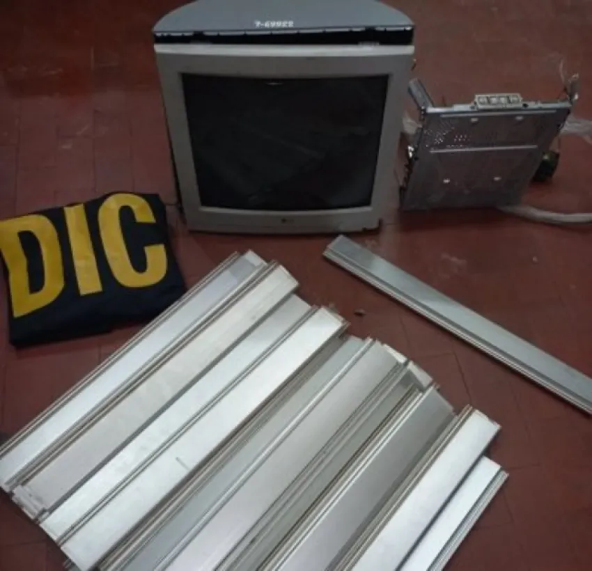 Acto seguido los investigadores implementaron recorridas hasta que encontraron a dos hombres de 21 y 28 años quienes estaban quitando partes de la PC para comercializarla, así como también tenían 24 persianas de aluminio en su poder.