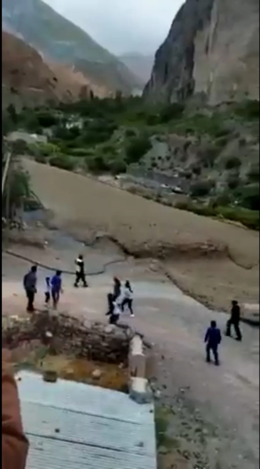 Las imágenes registradas en la tarde del lunes, cerca de las 19, muestran una enorme corriente de agua y lodo que sorprendió a quienes estaban en el lugar. Las intensas lluvias en la zona provocaron que el caudal del río Milmahuas aumentara repentinamente y desencadenara la crecida que pudo haber causado una tragedia.