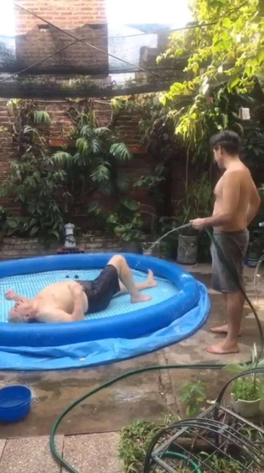 Video viral: un chaqueño alivió el calor de la siesta de hoy con una manguera y su pileta inflable