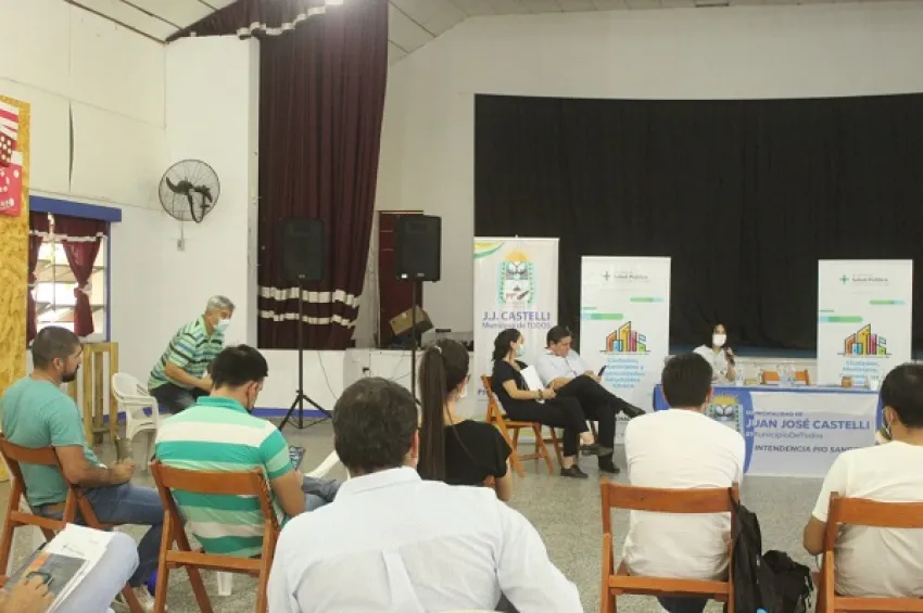 Los disertantes del equipo nacional Enrique Ríos y Estefanía Mantua y del equipo provincial el Juan Domingo Duarte además de los referentes Jorge Flores, Leonel Brítez y Rita Adriana Brítez comentaron las siete líneas de promoción de salud municipal que quieren implementar en el territorio.