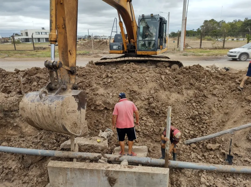 Repararon la fisura de un caño en la obra que se lleva adelante en Villa Fabiana