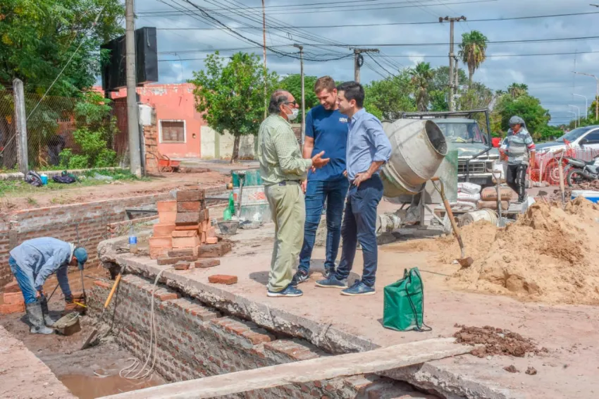 En la mañana del jueves el intendente Bruno Cipolini acompañado por el secretario de Servicios Públicos, Pablo Alvarez, supervisó los trabajos que se realizan en el lugar y detalló que el nuevo canal va a descomprimir el caudal de agua que se acumulaba en la calle Carlos Janik y que desembocaba en la avenida Papa Francisco.