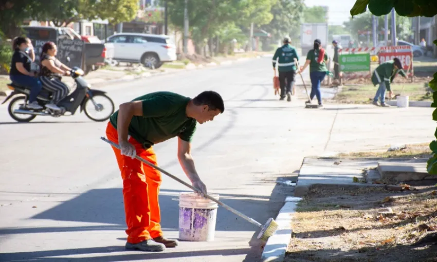 Trabajadores de la delegación municipal del barrio San Cayetano realizaron un operativo de saneamiento ambiental que consistió en desmalezado, barrido y pintura de cordones en todo el sector, a fin de mantener en buenas condiciones los espacios públicos donde circulan los vecinos.