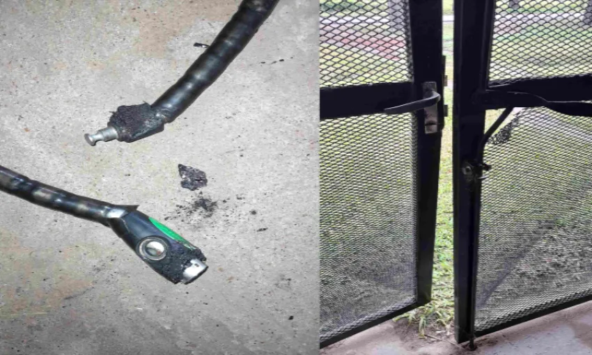 La Policía determino que los delincuentes habrían utilizado herramientas de corte y una especie de soplete para romper los candados y cadenas colocados en las ruedas de motocicleta marca Honda CB1, color rojo y negro, de 125 cc, una motocicleta marca Honda Wave, de 100 cc., color negro y una bicicleta playera color rosada, para dama, rodado 26, con porta equipaje.