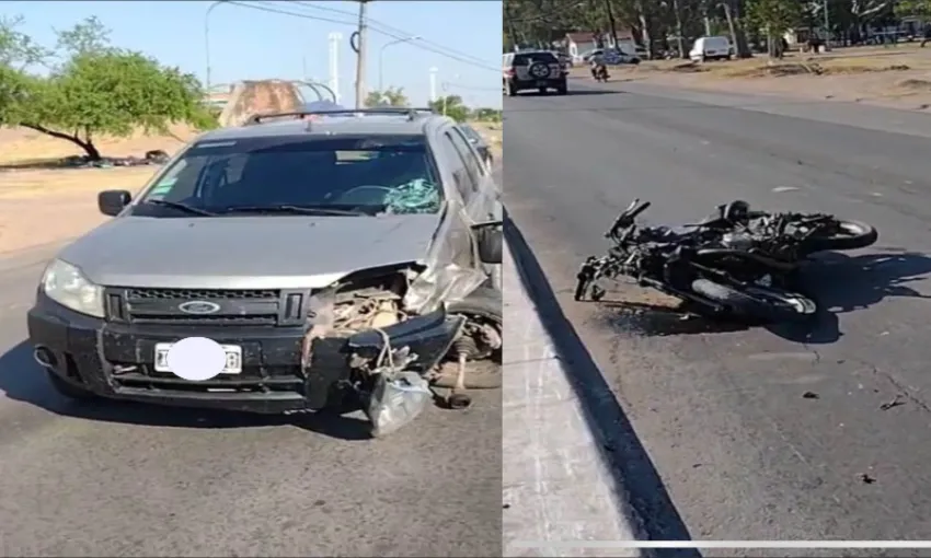 Este viernes, cerca de las 16:40 horas, una motocicleta y una camioneta fueron protagonistas de un accidente de tránsito sobre la Avenida Castelli al 1800 aproximadamente.