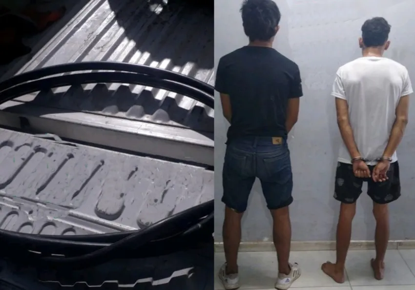 En otro hecho similar en el barrio Puerta del Sol, personal de Patrulla Preventiva fue alertado sobre la presencia de dos jóvenes que estaban sustrayendo cables. Del lugar la policía procedió a la demora de R. D. A. J. de 17 años y N. N. F. de 18 años y en poder de estos se incautó un rollo de cable de aprox. 05 metros y un arma blanca tipo serrucho utilizado para cometer el ilícito.