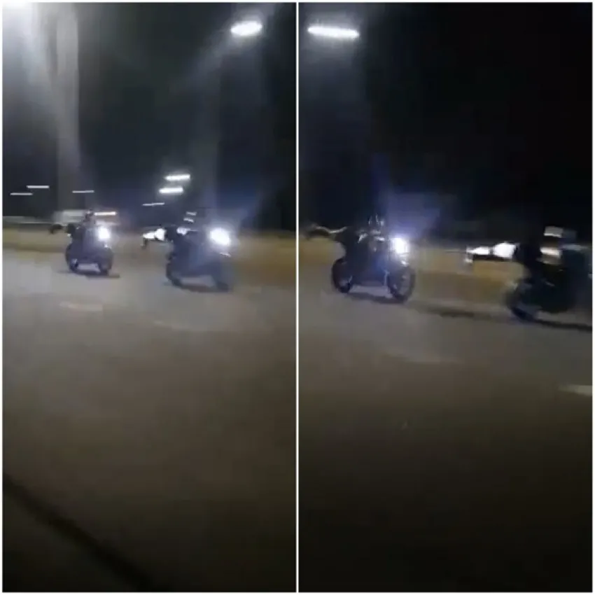 El hecho sucedió el viernes 28 a las 0:15 de la noche. Según se aprecia en el registro audiovisual, el estilo de las motos es tipo pisteras.