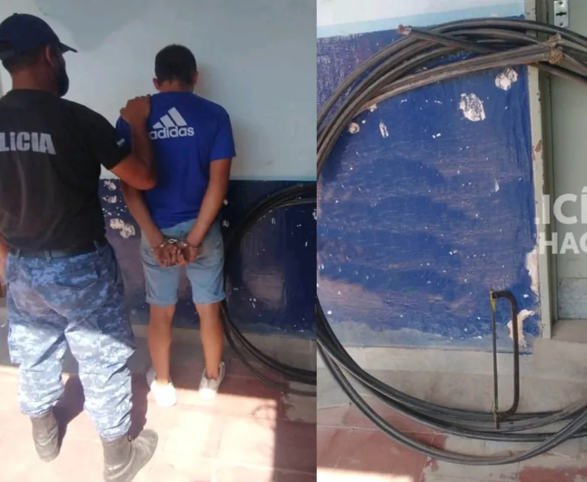 Los jóvenes al notar la presencia policial arrojaron el cable y una sierra de mano, para darse a la fuga a pie. Los uniformados solo pudieron dar con uno de ellos, un joven de 17 años identificado como A. A. R., en poder de este se secuestró 10 metros aproximadamente de cable multifilamentos y una sierra de mano de metal.