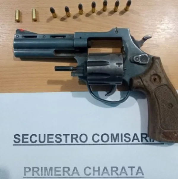 Ante esta situación, los efectivos procedieron a la detención del agresor de 68 años, incautando en su poder un arma de fuego, tipo revólver de calibre 22 largo, tambor de nueve alveolos con siete cartuchos y dos vainas servidas del mismo calibre.