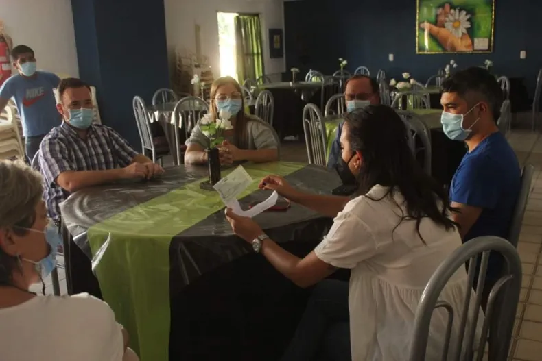 Las autoridades dialogaron con el personal y también con parte de la comisión e hicieron la entrega formal de los fondos.