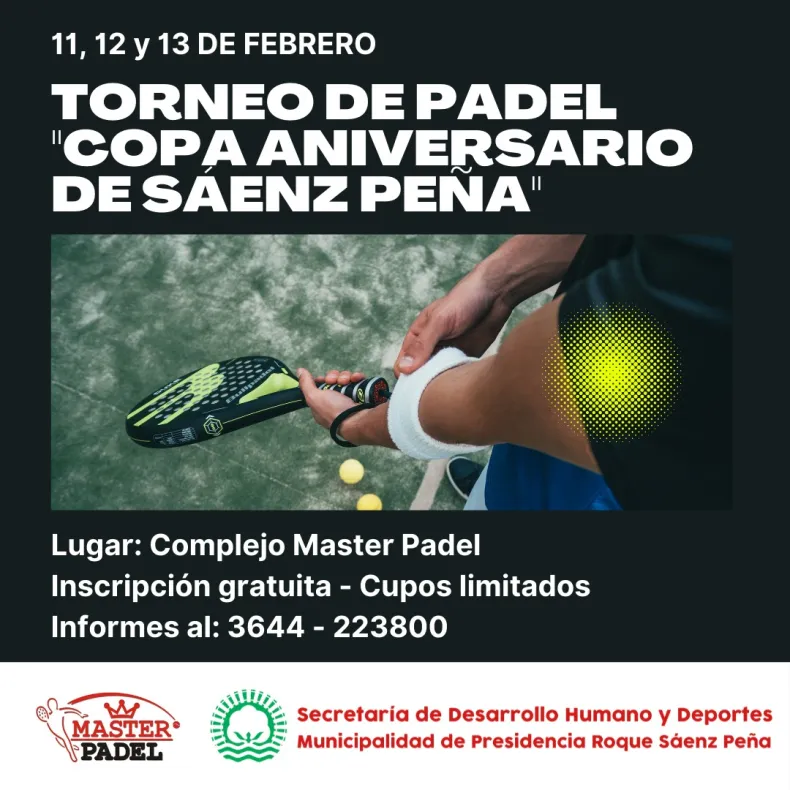 El 11, 12 y 13 de febrerose desarrollará el Torneo de Pádel "Copa Aniversario de Sáenz Peña" en el Complejo Master Padel de la ciudad termal.