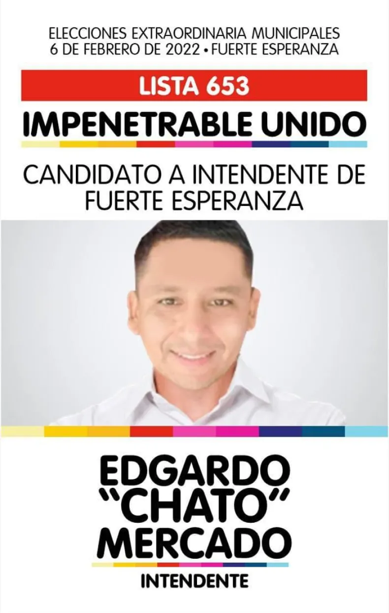 Edgardo "Chato" Mercado es el joven candidato que este domingo, de la mano de la lista "Impenetrable Unido", buscará arrebatarle al oficialismo la intendencia de Fuerte Esperanza que Inés Ortega, esposa del fallecido ex intendente Walter "Bulinki" Correa, pretende retener.